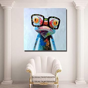 ZXMPGYH Peint à la Main Peinture à lhuile intérieure Moderne Abstrait Animal Coloré Grenouille Peintures murales Photo Peinture sur Toile pour Chambre Cuisine & Maison Tableaux, posters et arts décoratifs