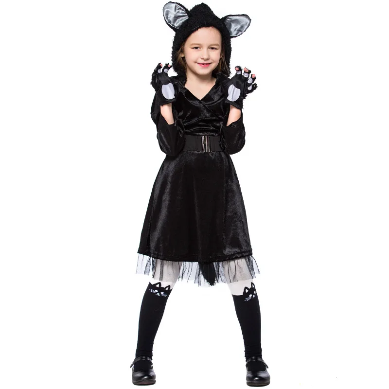 Child Girls Kitty Cosplay Kids Halloween Black Cat Animal Costumes Cute Cat Teen Girl Carnival Party Dress Up Girls Costumes Aliexpress